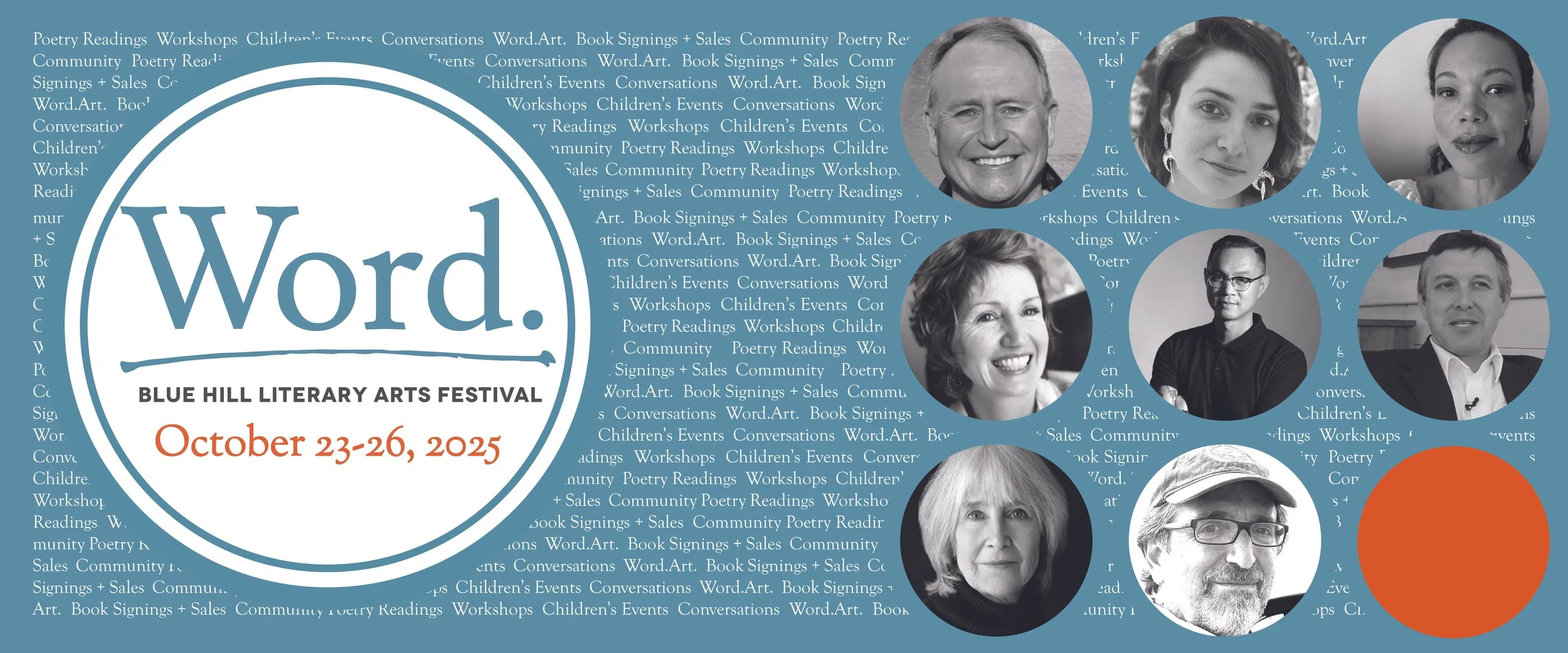 Word is made possible by the generous support of many community businesses and partner organizations as well as individual donors and volunteers. We are deeply grateful to our fiscal sponsor, Blue Hill Community Development, and to all sponsors and supporters of Blue Hill’s literary festival. Partners include WERU-FM, the Blue Hill Public Library, and Blue Hill Books.